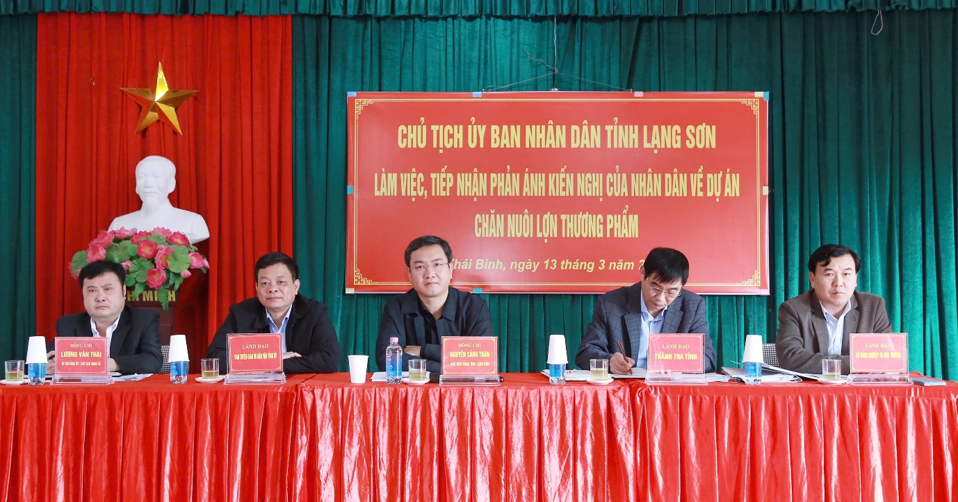 Đồng chí Chủ tịch UBND tỉnh làm việc, tiếp nhận phản ánh, kiến nghị của công dân liên quan đến Dự án trang trại chăn nuôi lợn thương phẩm ở xã Thái Bình