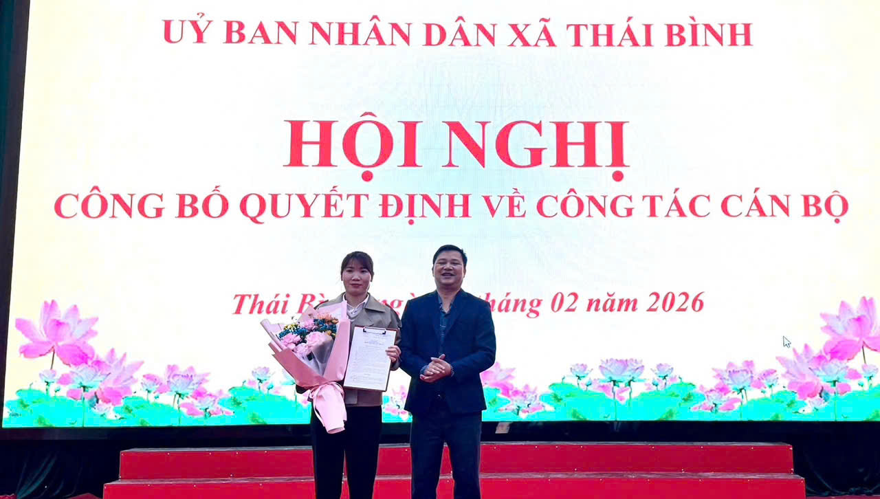 Tại hội nghị, Trưởng Phòng Văn hoá - Xã hội đã công bố Quyết định của Chủ tịch UBND xã Thái Bình về việc bổ nhiệm bà Nguyễn Thị Lệ – Phó Giám đốc Trung tâm Phục vụ Hành chính công xã giữ chức vụ Giám đốc Trung tâm Phục vụ Hành chính công xã Thái Bình. Thời hạn bổ nhiệm là 05 năm kể từ ngày 25/01/2026.