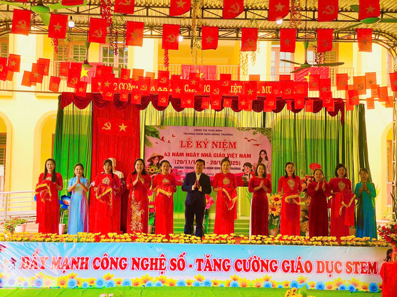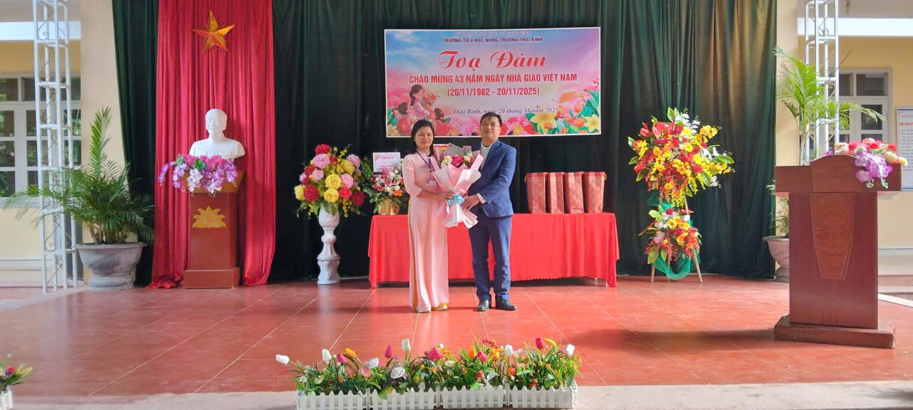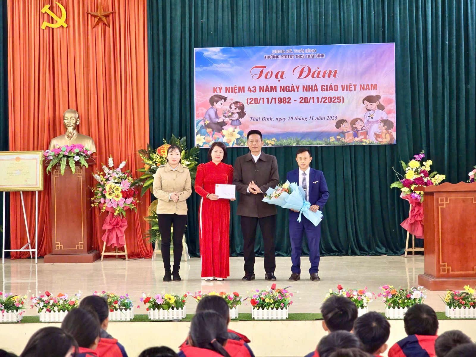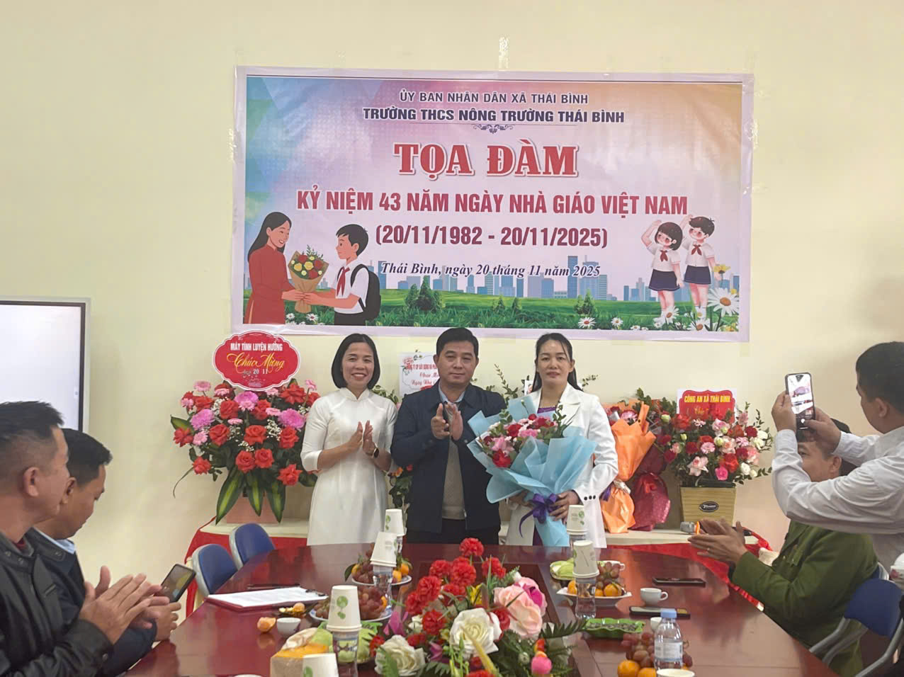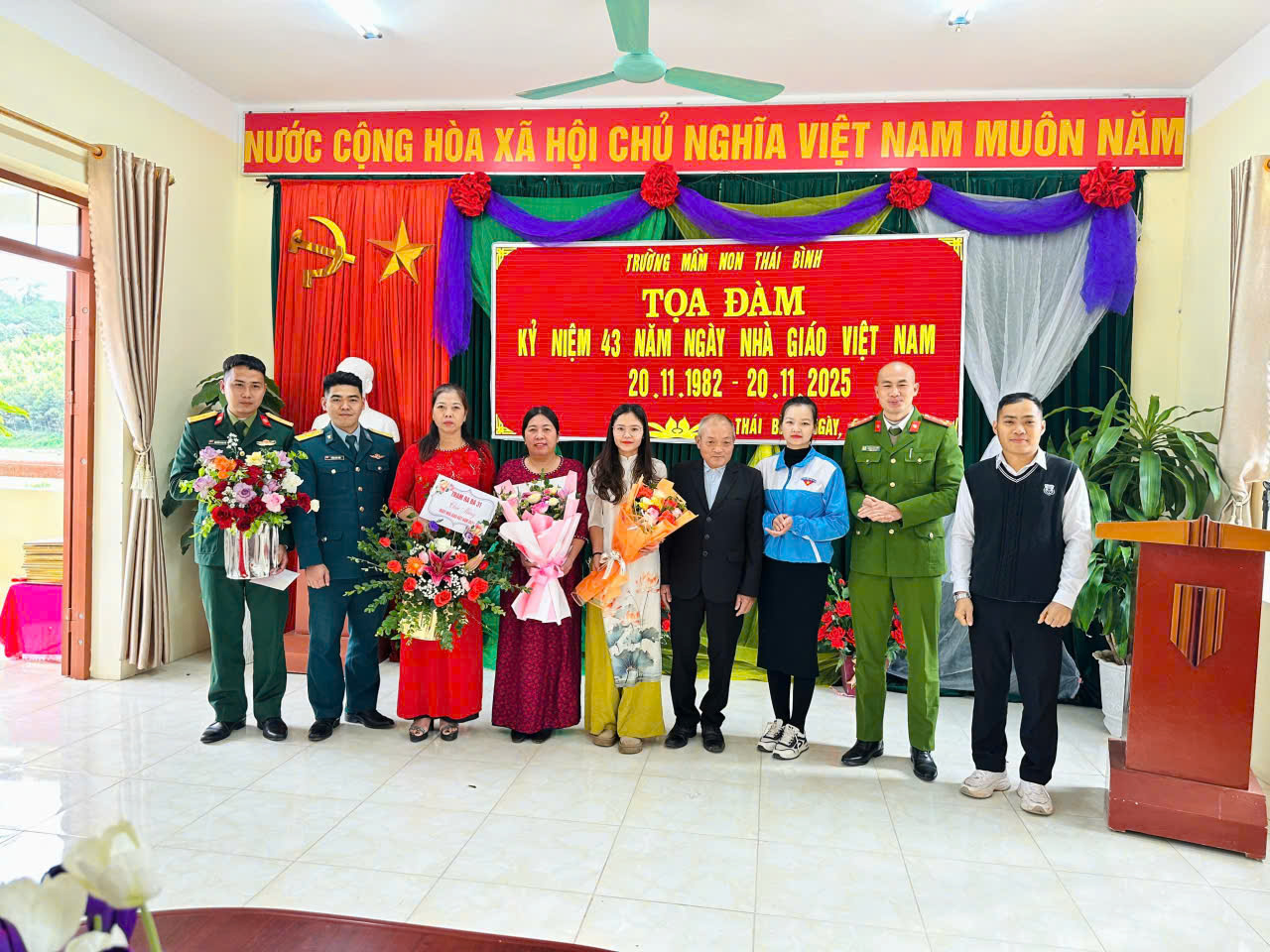 Sáng ngày 20/11, nhân dịp kỷ niệm Ngày Nhà giáo Việt Nam, lãnh đạo Đảng ủy - Hội đồng nhân dân (HĐND) - Uỷ ban Mặt trận tổ quốc (UBMTTQ) - Uỷ ban nhân dân (UBND) xã Thái Bình tổ chức đoàn công tác đến thăm, tặng hoa và gửi lời chúc mừng tới các thầy cô giáo tại các trường học trên địa bàn xã. Hoạt động nhằm tri ân những nỗ lực, cống hiến của đội ngũ cán bộ, giáo viên trong sự nghiệp “trồng người”, đồng thời khẳng định sự quan tâm của cấp ủy, chính quyền và hệ thống chính trị địa phương đối với sự nghiệp giáo dục.