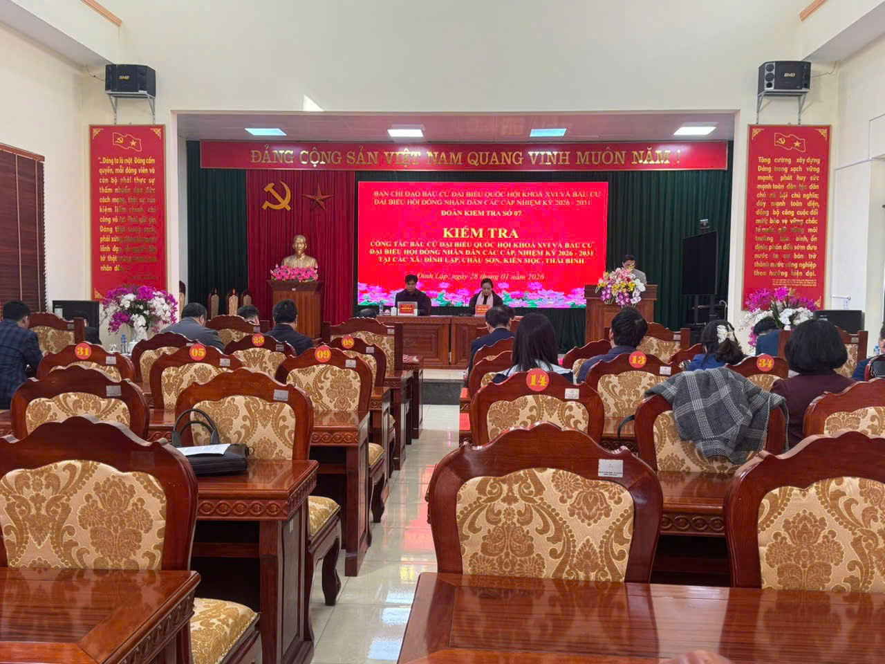 Sáng 28/1/2026, Đoàn kiểm tra số 7 của Ban Chỉ đạo bầu cử đại biểu Quốc hội khóa XVI và đại biểu HĐND các cấp nhiệm kỳ 2026 – 2031 do đồng chí Giáp Thị Bắc, Ủy viên Ban Thường vụ Tỉnh ủy, Trưởng Ban Tổ chức Tỉnh ủy, thành viên Ban Chỉ đạo làm Trưởng đoàn đã kiểm tra công tác bầu cử tại xã Thái Bình.