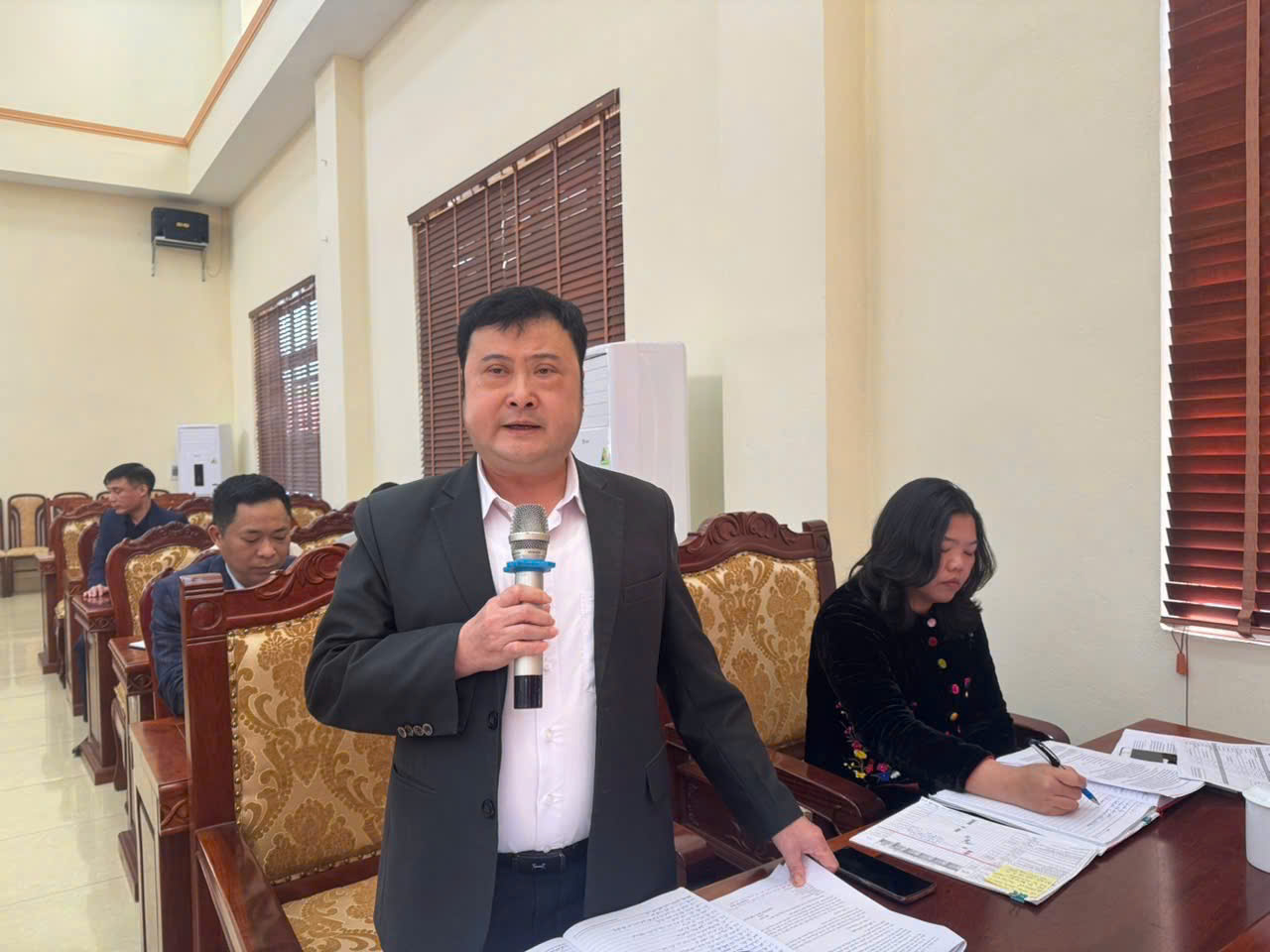 Đồng chí Lương Văn Thái, Bí thư Đảng uỷ, Chủ tịch HĐND xã phát biểu ý kiến