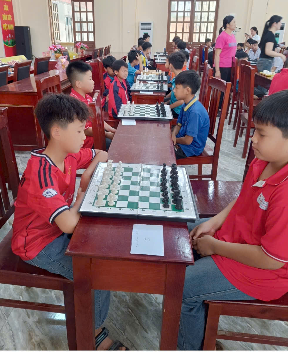 Môn Cờ vua năm nay, có 76 vận động viên tham gia thi đấu ở các nội dung: nam nhi đồng, nữ nhi đồng, nam thiếu niên và nữ thiếu niên. Sau 1 ngày tranh tài, với những màn đấu trí đầy kịch tính và trí tuệ của các vận động viên. Các kỳ thủ nhí đã mang đến một bầu không khí tập trung cao độ, nơi những nước đi táo bạo và chiến thuật sắc sảo được phô diễn trên từng bàn cờ.