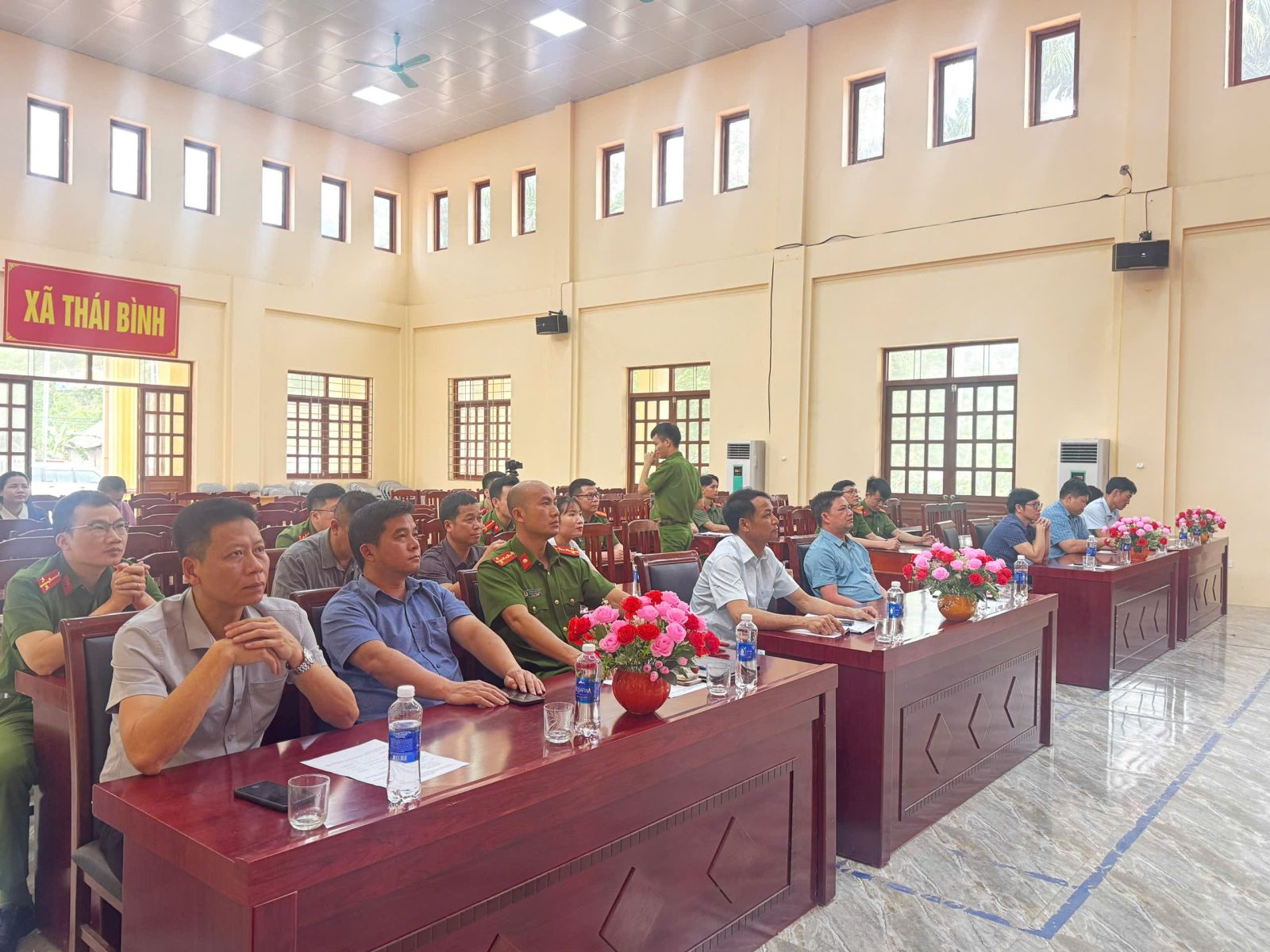 Tại đây, các đại biểu cùng nhau ôn lại truyền thống 80 năm Ngày truyền thống Công an nhân dân Việt Nam, trong suốt chặng đường lịch sử xây dựng đất nước, lực lượng Công an luôn tuyệt đối trung thành với Đảng, hết lòng, hết sức phụng sự Tổ quốc, phục vụ Nhân dân. Cán bộ, chiến sĩ Công an luôn phát huy truyền thống, đổi mới, linh hoạt, sáng tạo, hiệu quả, đấu tranh làm thất bại mọi âm mưu của các thế lực thù địch, trấn áp mạnh với các loại tội phạm, vi phạm pháp luật, đạt nhiều thành tích, kết quả nổi bật, góp phần bảo đảm an ninh chính trị, trật tự an toàn xã hội trên địa bàn xã. Trong thời gian quan, Công an xã Thái Bình đã chủ động, nhanh chóng ổn định tổ chức, kiện toàn lực lượng để triển khai nhiệm vụ công tác bảo vệ an ninh quốc gia, bảo đảm trật tự an toàn xã hội trên địa bàn xã. Đặc biệt, đã chủ động tham mưu với Đảng ủy, UBND xã ban hành nhiều văn bản lãnh đạo, chỉ đạo công tác bảo đảm an ninh, trật tự trên địa bàn; bảo đảm tuyệt đối an toàn Đại hội Đảng các cấp, nhiệm kỳ 2025 – 2030, Cuộc bầu cử Đại biểu Quốc hội và HĐND các cấp, nhiệm kỳ 2026 – 2031.