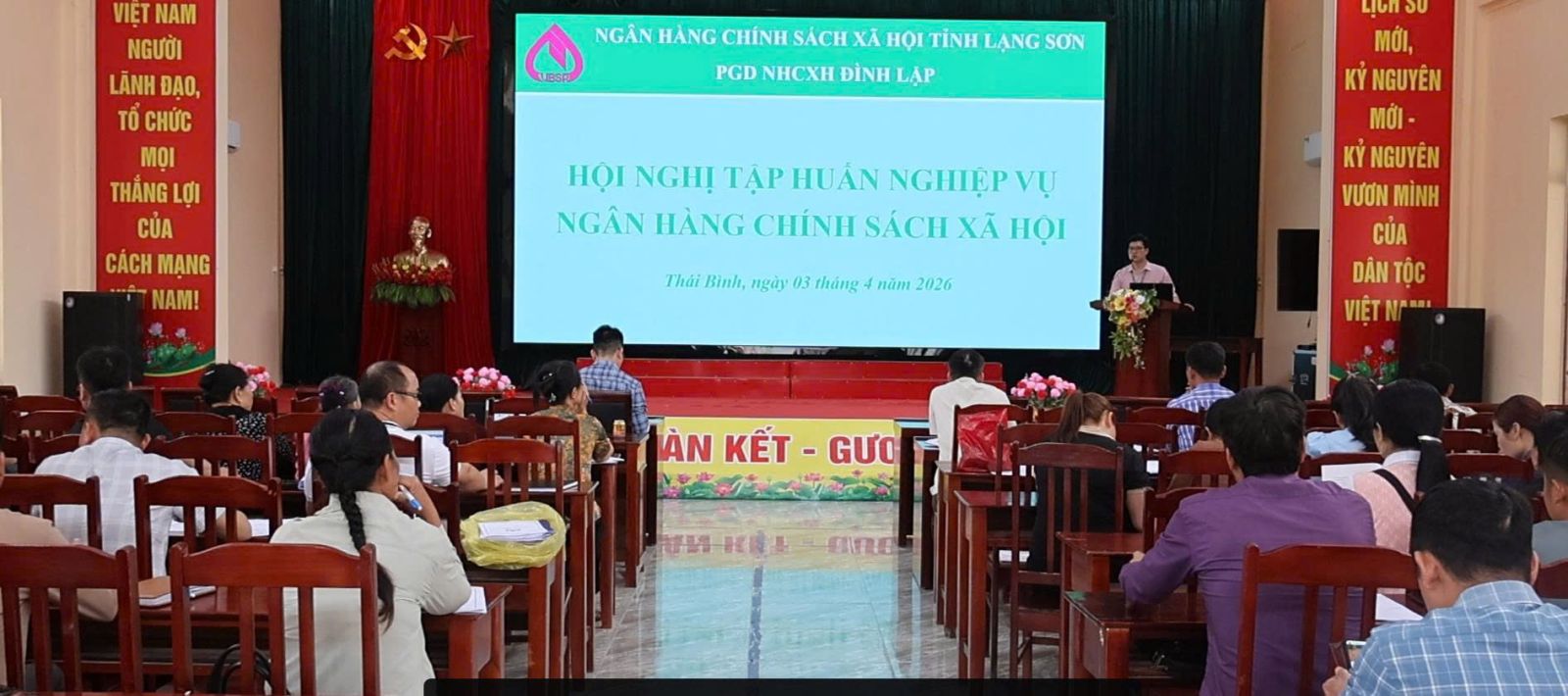 Sáng ngày 3/4/2026, Phòng giao dịch Ngân hàng Chính sách xã hội Đình Lập tổ chức Hội nghị tập huấn nghiệp vụ ngân hàng chính sách xã hội năm 2026 cho các đồng chí trưởng thôn, Ban quản lý Tổ tiết kiệm và vay vốn trên địa bàn xã Thái Bình.