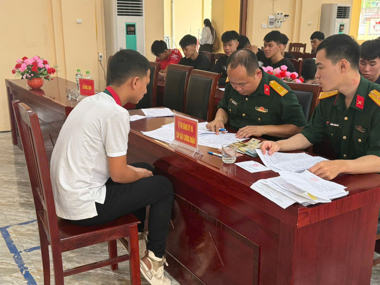 Công tác đăng ký được triển khai nghiêm túc, chặt chẽ, đúng quy trình. Quá trình đăng ký, các thanh niên được kiểm tra sức khỏe theo quy định với các nội dung như đo chiều cao, cân nặng, kiểm tra thị lực, huyết áp, nhịp tim và các chỉ số sức khỏe ban đầu. Công tác kiểm tra được thực hiện chặt chẽ, bảo đảm đánh giá đúng tình trạng sức khỏe công dân; kết quả đạt 100% theo yêu cầu đề ra.