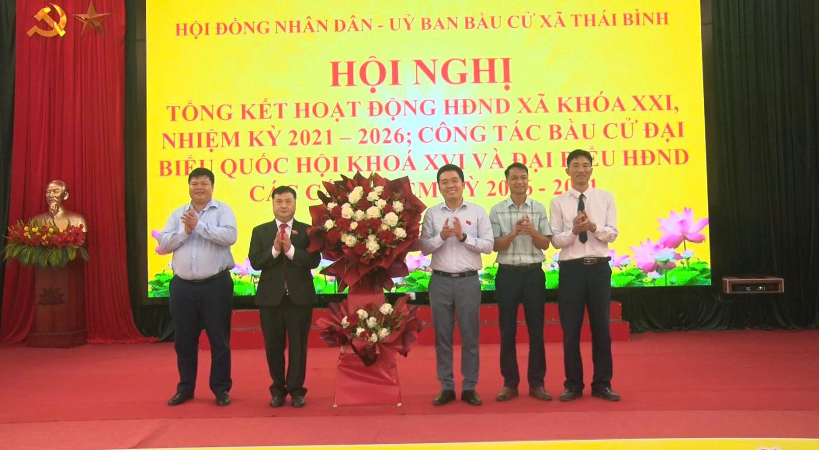 Ngày 30/3/2026, Hội đồng nhân dân, Ủy ban Bầu cử xã Thái Bình tổ chức Hội nghị tổng kết công tác HĐND nhiệm kỳ 2026 – 2031 và công bầu cử đại biểu Quốc hội khóa XVI và đại biểu HĐND các cấp, nhiệm kỳ 2026 – 2031. Dự hội nghị có đồng chí Vương Lê Hoàng, Phó Trưởng Ban Pháp chế HĐND tỉnh, đại biểu HĐND tỉnh trúng cử tại đơn vị số 5.