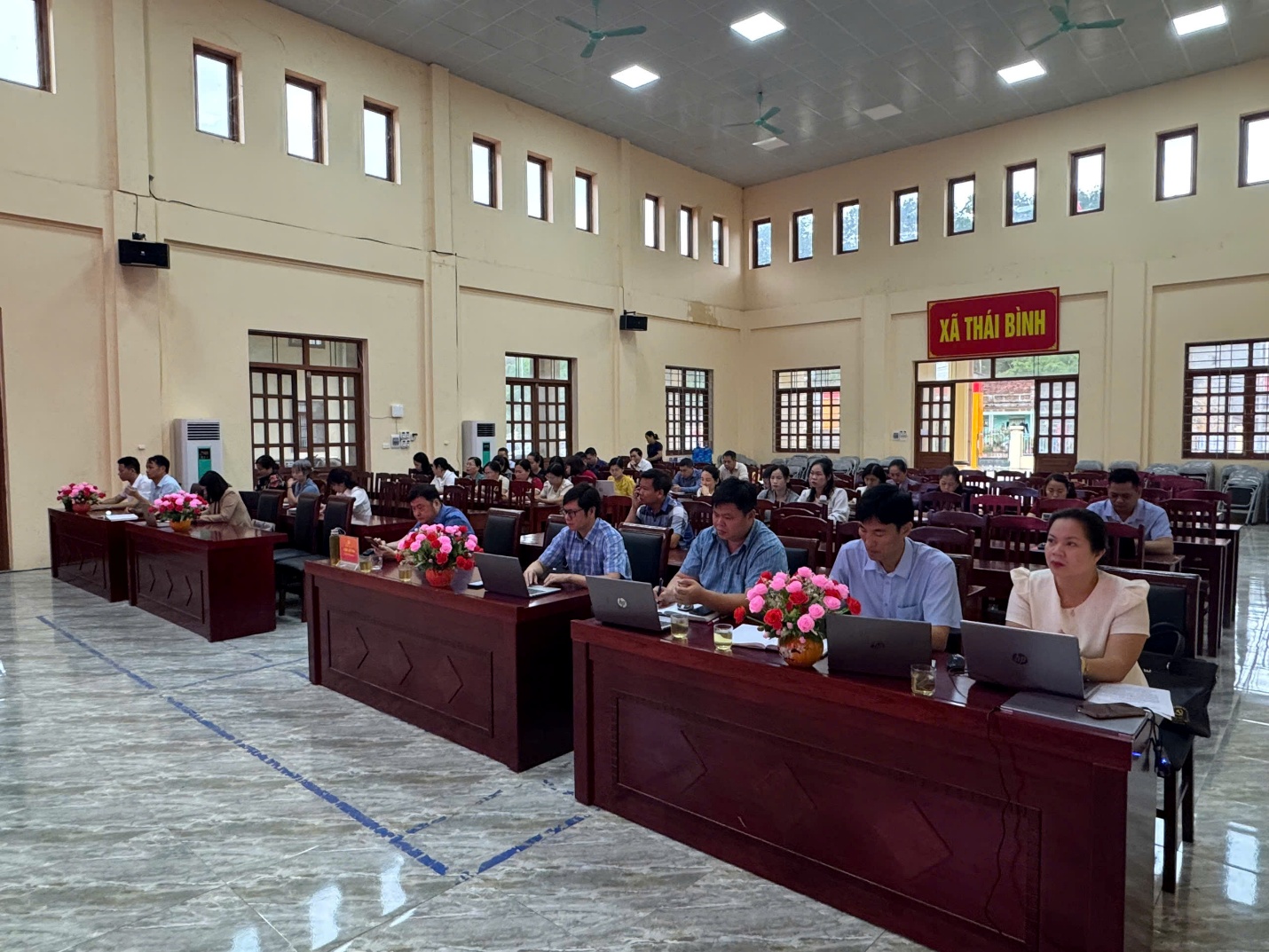 Các đại biểu dự hội nghị tại điểm cầu xã Thái Bình