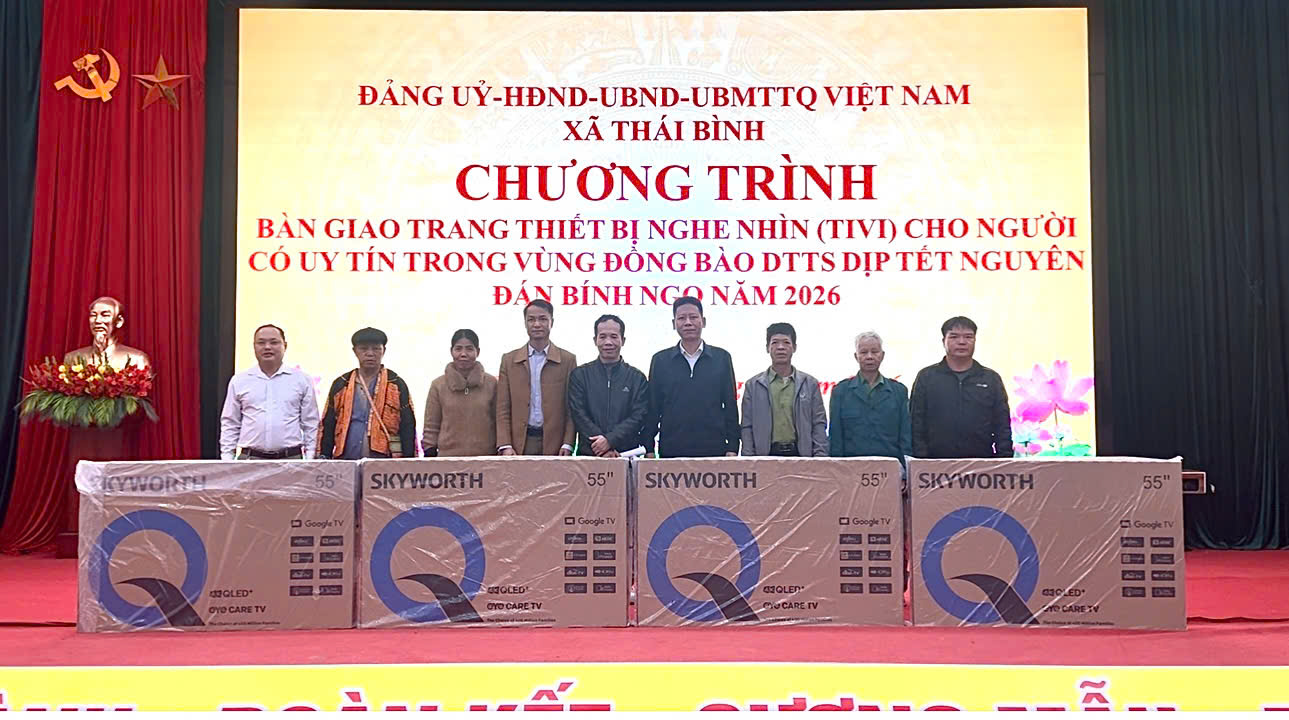 Theo đó, 22 người có uy tín trong đồng bào dân tộc thiểu số của xã Thái Bình được hỗ trợ ti vi thông minh Smart TV 55 inch, từ nguồn vốn Chương trình mục tiêu quốc gia phát triển kinh tế - xã hội vùng đồng bào dân tộc thiểu số và miền núi, giai đoạn 2021-2030.