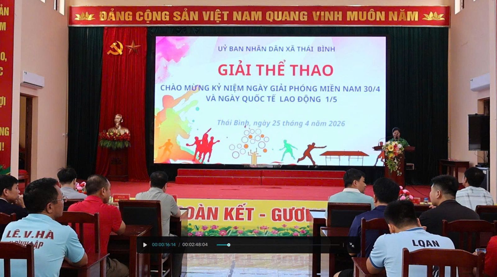 Hòa trong không khí thi đua sôi nổi hướng tới kỷ niệm 51 năm Ngày Giải phóng miền Nam, thống nhất đất nước (30/4/1975 – 30/4/2026) và Ngày Quốc tế Lao động 01/5. Ngày 25/4/2026 Ủy ban nhân dân xã Thái Bình tổ chức thi đấu thể thao với môn Bắn nỏ và môn Bóng bàn thu hút sự tham gia đông đảo của cán bộ, công chức, viên chức và Nhân dân trên địa bàn. Dự, cổ vũ và tham gia giải thể thao có đồng chí Lương Văn Thái, Bí thư Đảng uỷ, Chủ tịch HĐND xã,; đồng chí Hoàng Ngọc Thảo, Phó Bí thư Thường trực Đảng uỷ; đồng chí Đặng Đình Đức, Phó Bí thư Đảng uỷ, Chủ tịch UBND xã, Lãnh đạo các cơ quan, ban ngành, đoàn thể xã.