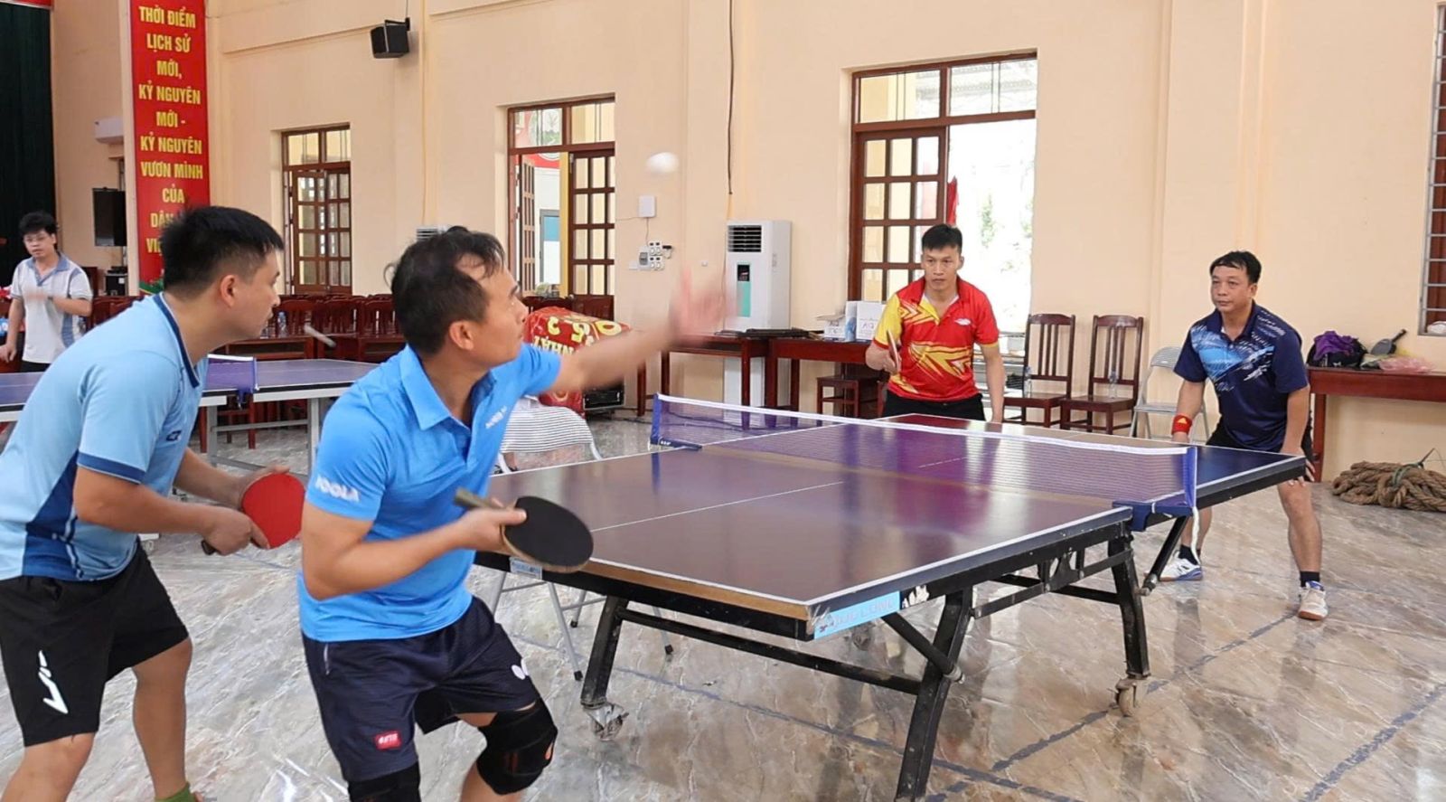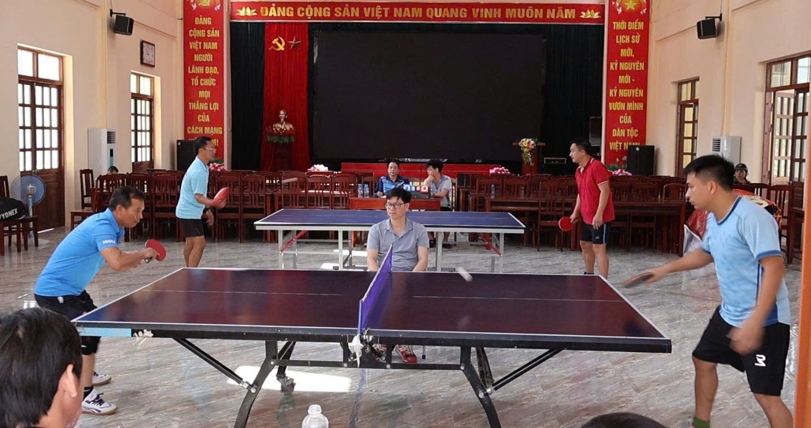 Môn Bóng bàn được tổ chức với hai nội dung thi đấu gồm đơn nam và đôi nam, tạo điều kiện để các vận động viên thể hiện kỹ năng, bản lĩnh thi đấu cũng như tinh thần đoàn kết, phối hợp. Ở nội dung đơn nam, các vận động viên đã cống hiến nhiều trận đấu hấp dẫn với những pha bóng nhanh, kỹ thuật xử lý linh hoạt. Nội dung này đòi hỏi vận động viên phải có thể lực tốt, khả năng phản xạ nhanh cùng chiến thuật hợp lý trong từng pha bóng. Trong khi đó, nội dung đôi nam lại mang đến màu sắc thi đấu khác biệt khi đề cao yếu tố phối hợp ăn ý, hỗ trợ lẫn nhau giữa các vận động viên. Những pha phối hợp nhịp nhàng, tấn công – phòng thủ hợp lý đã tạo nên nhiều trận đấu gay cấn, nhận được sự cổ vũ sôi nổi từ khán giả. Thông qua môn Bóng bàn, giải thể thao không chỉ tạo sân chơi lành mạnh, bổ ích mà còn góp phần nâng cao sức khỏe, thúc đẩy phong trào rèn luyện thể dục thể thao trong cán bộ và Nhân dân. Đồng thời, đây cũng là dịp để tăng cường giao lưu, gắn kết, xây dựng đời sống văn hóa ở cơ sở ngày càng phong phú.