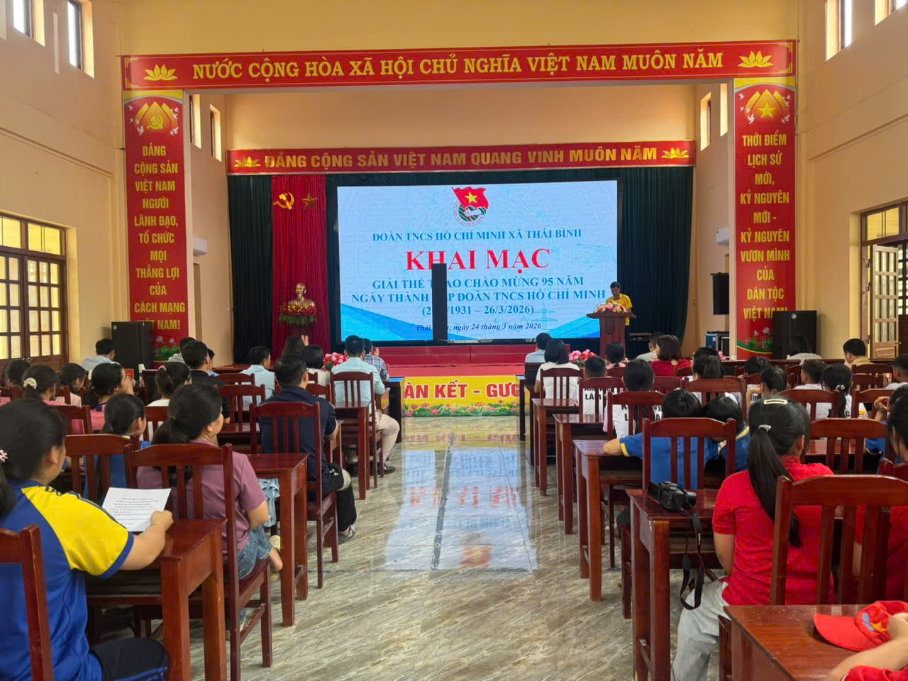 Ngày 24/3/2026, Đoàn Thanh niên cộng sản Hồ Chí Minh xã Thái Bình tổ chức khai mạc giải thể thao chào mừng kỷ niệm 95 năm ngày thành lập Đoàn Thanh niên cộng sản Hồ Chí Minh (26/3/1931 - 26/3/2026) cho Thiếu niên, Nhi đồng xã Thái Bình năm 2026.