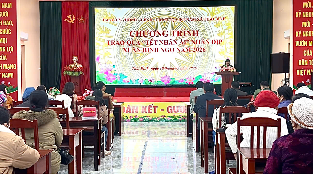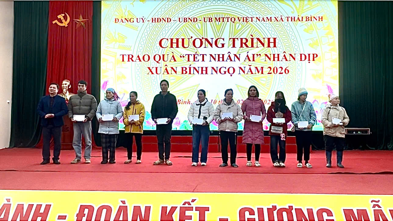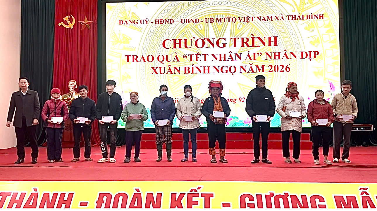 Ngày 10/01/2026, Đảng ủy, HĐND, UBND xã Thái Bình tổ chức chương trình trao quà “Tết Nhân ái” Xuân Bính Ngọ 2026 đến các hộ gia đình chính sách, người có công và các hộ gia đình có hoàn cảnh khó khăn trên địa bàn xã.