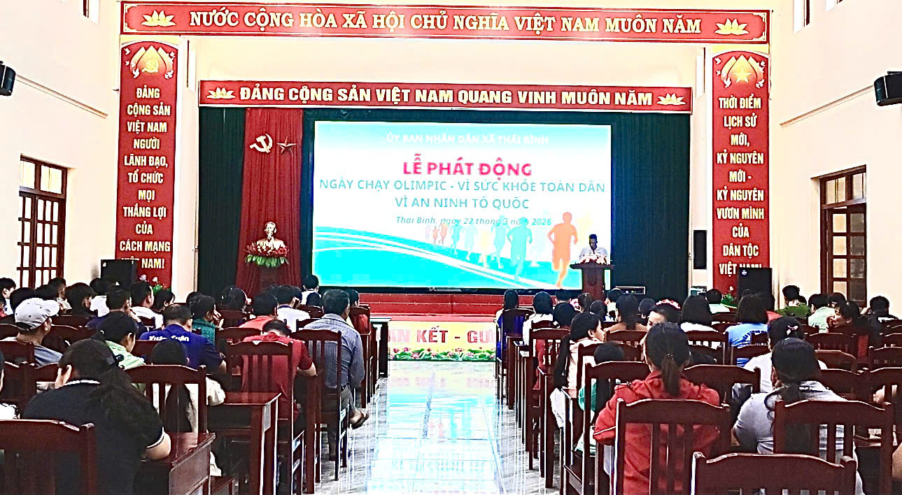 Hướng tới kỷ niệm 80 năm ngày Chủ tịch Hồ Chí Minh vĩ đại ra Lời kêu gọi toàn dân tập thể dục, thể thao; chào mừng kỷ niệm 80 năm Ngày truyền thống ngành Thể dục Thể thao, kỷ niệm 80 năm Ngày truyền thống lực lượng An ninh nhân dân (12/7/1946-12/7/2026). Sáng ngày 22 tháng 3, UBND xã Thái Bình tổ chức Lễ phát động Ngày chạy Olympic, Vì sức khỏe toàn dân, Vì an ninh Tổ quốc năm 2026. Dự buổi lễ có đồng chí Nguyễn Văn Nguyện, Phó Chủ tịch UBND xã; các đồng chí trong Ban Thường vụ Đảng uỷ, Lãnh đạo, công chức, viên chức các cơ quan, đơn vị trên địa bàn; Cán bộ, giáo viên, học sinh các đơn vị trường học và đông đảo nhân dân trong xã tham dự.