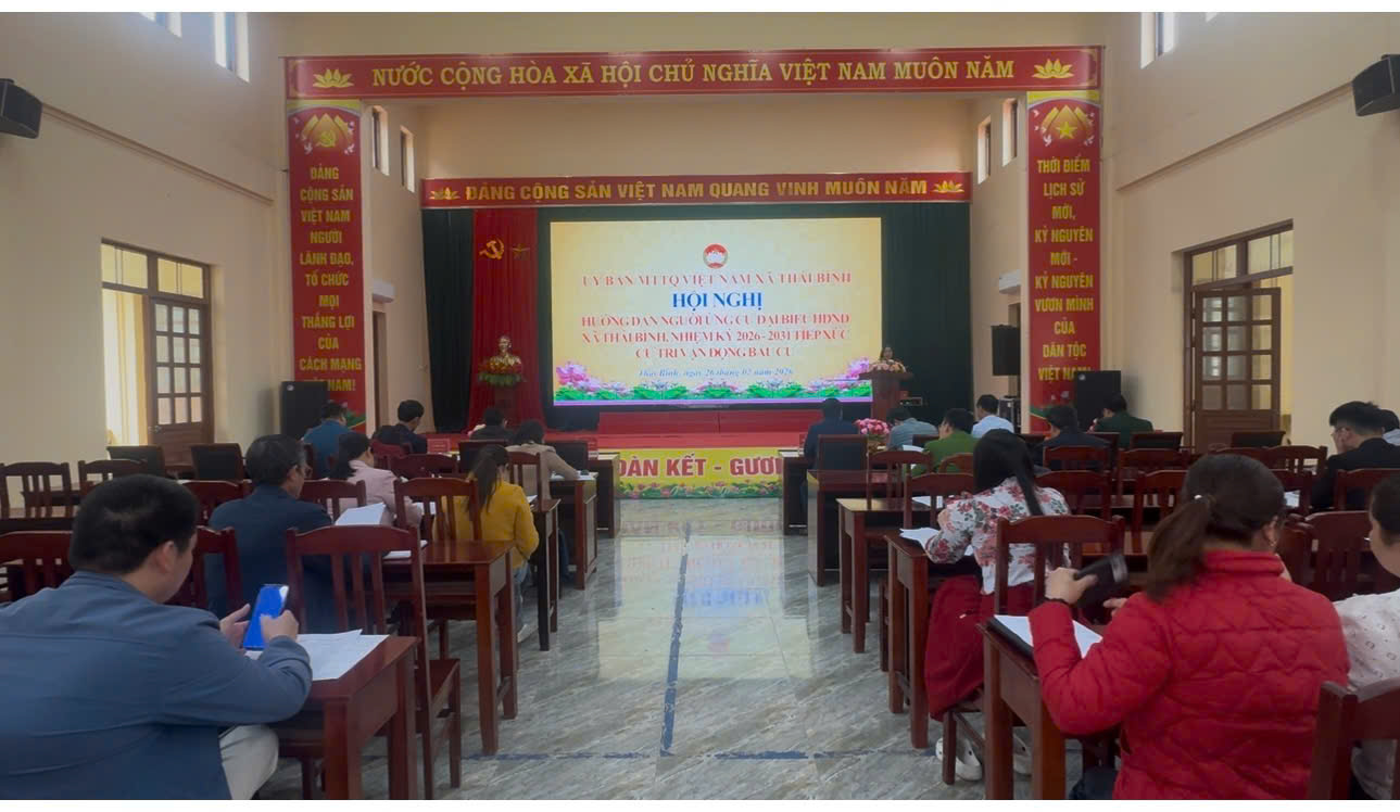 Chiều 26/2, Ủy ban MTTQ Việt Nam xã Thái Bình tổ chức Hội nghị hướng dẫn người ứng cử đại biểu HĐND xã Thái Bình, nhiệm kỳ 2026-2031 tiếp xúc cử tri, vận động bầu cử.