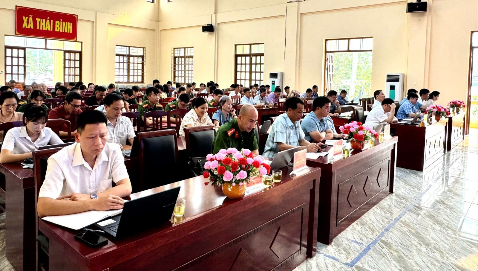Sáng 13/4, Bộ Chính trị, Ban Bí thư tổ chức hội nghị toàn quốc nghiên cứu, học tập, quán triệt, triển khai thực hiện Nghị quyết hội nghị lần thứ hai Ban Chấp hành Trung ương Đảng khóa XIV. Hội nghị được tổ chức bằng hình thức trực tiếp và trực tuyến đến các điểm cầu trong cả nước, được truyền hình trực tiếp trên các kênh, sóng của Đài Truyền hình Việt Nam và Đài Tiếng nói Việt Nam. Dự và chỉ đạo hội nghị tại điểm cầu xã Thái Bình có đồng chí Phạm Hùng Trường, Tỉnh ủy viên, Giám đốc Sở Tư pháp. Đồng chí Lương Văn Thái, Bí thư Đảng ủy, Chủ tịch HĐND xã.